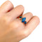 Three beautiful rectangular blue kyanite stones electroformed with a half round band of pure shiny copper creating a minimalist elegant ring.